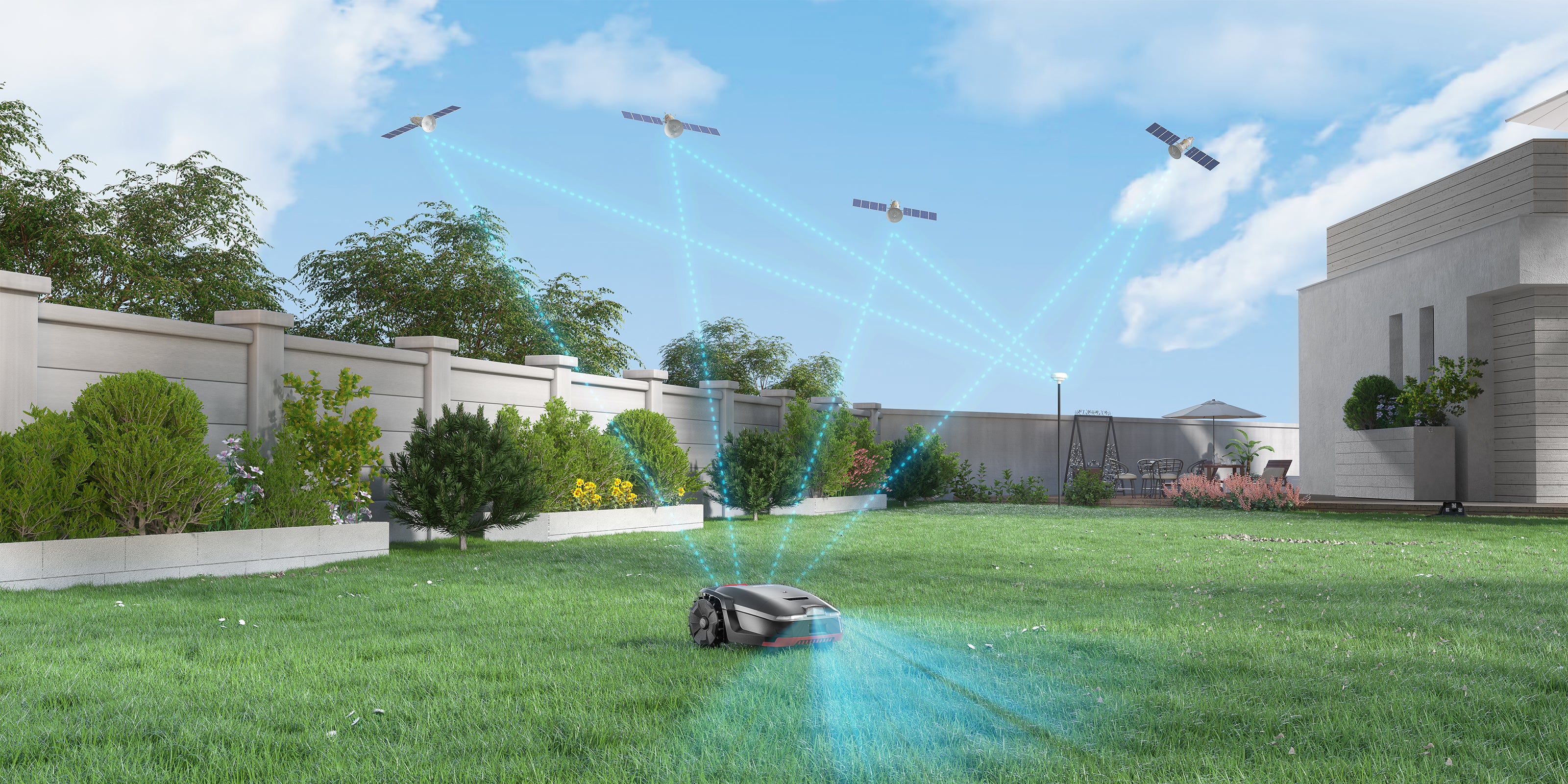 Stabilité du signal à toute épreuve. Alliant précision satellitaire et vision par IA, elle permet de naviguer aisément dans les jardins complexes et les zones blanches.